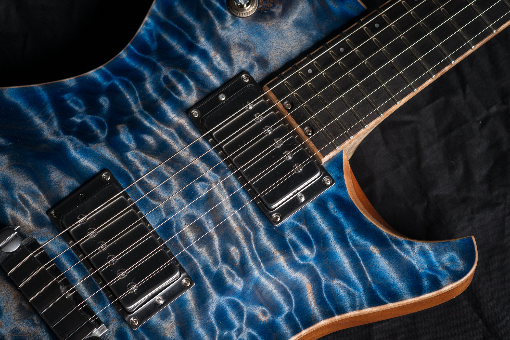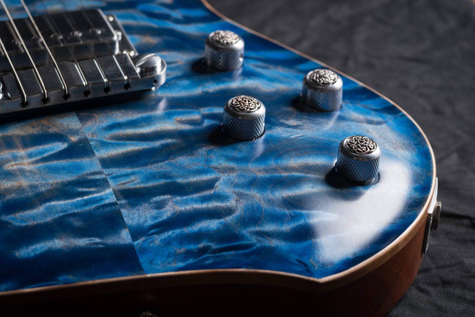Body: | Two Piece Mahogany Curved Extra Curly Michigan Maple Top Fake Binding |