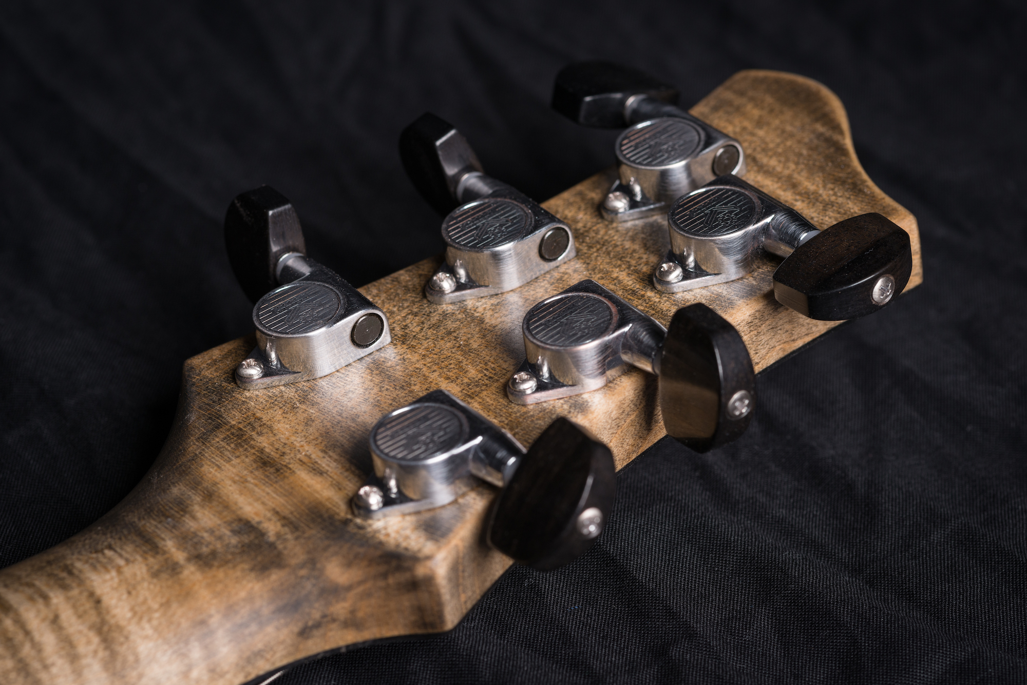 Specials: | ABM Alu Wraparound Q-Parts Celtic Knobs Kluson Roundbacks Tuner w/ Ebony Knobs Ebony Headstock Layer w/ MOP t.man guitars Inlay |